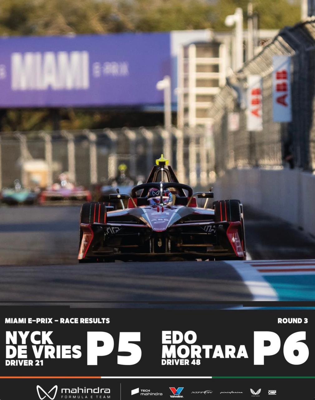 Chandigarh, Feb 03: Mahindra Racing, the only Indian team competing in the ABB FIA Formula E World Championship, is currently P3 overall in the championship standings, after delivering a solid double-points finish at the Miami E-Prix. The team’s drivers crossed the line in P5 (Nyck De Vries) and P6 (Edoardo Mortara).