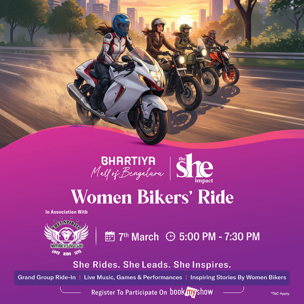 Bengaluru, Feb 17: Bhartiya Mall of Bengaluru, in association with Free Spirits Motorcycling Club (FSMC), is set to host the Women Bikers’ Ride on 7th March 2026 — a powerful celebration of courage, independence, and women who challenge conventions. The ride forms part of the 3rd edition of the mall’s signature Women’s Day campaign, TheSheImpact, which champions women-led stories, businesses, and communities.